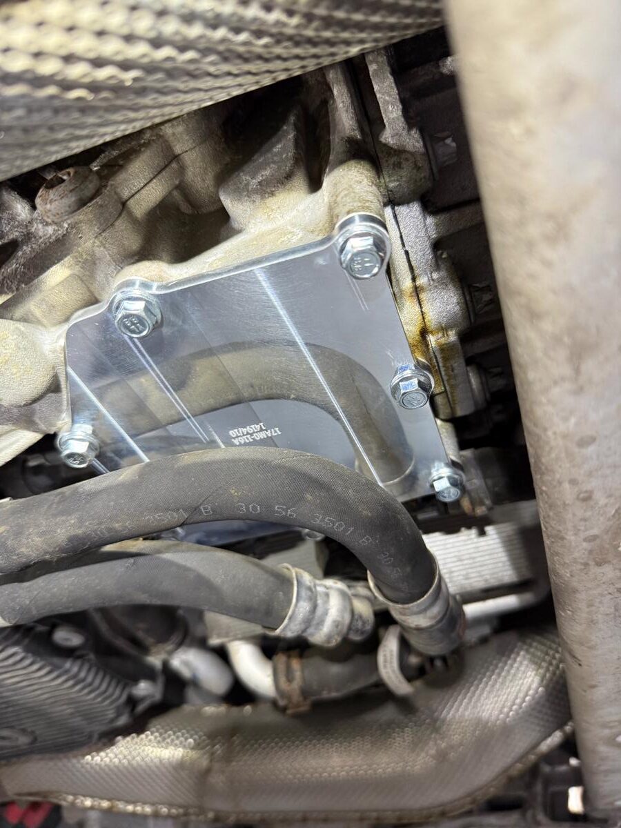 Designed to replace the known leaking standard plastic diff cooling jacket plate, this DAE upgraded part gives you a billet aluminum plate, new O-ring and fixings to solve your rear diff coolant leak issue!